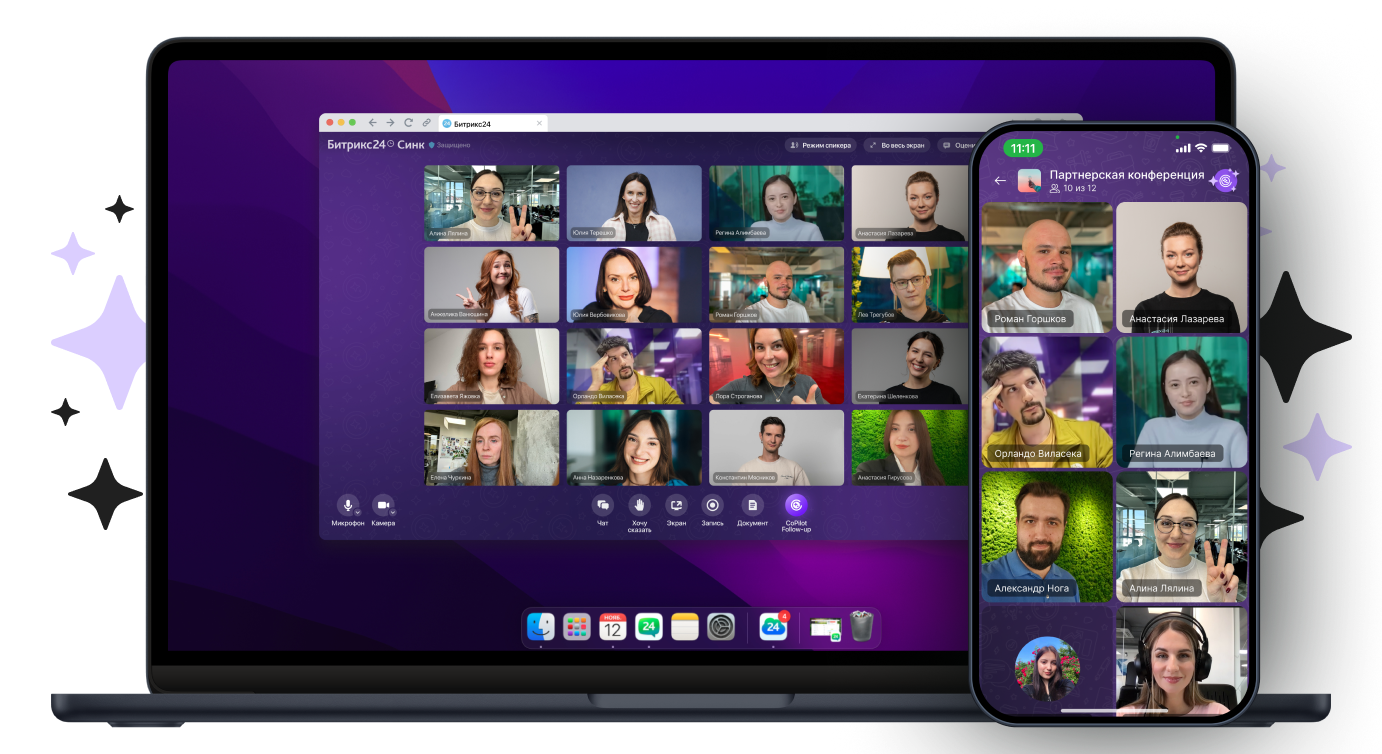 Коллеги, клиенты и подрядчики на связи — с высоким качеством видео и аудио, стабильным соединением и поддержкой групповых звонков до 48 человек. Звонок легко начать прямо из задачи, события в календаре или поста в Новостях компании.