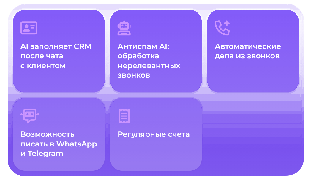 Клиентская база, переписка и звонки с клиентами хранятся в вашей CRM.